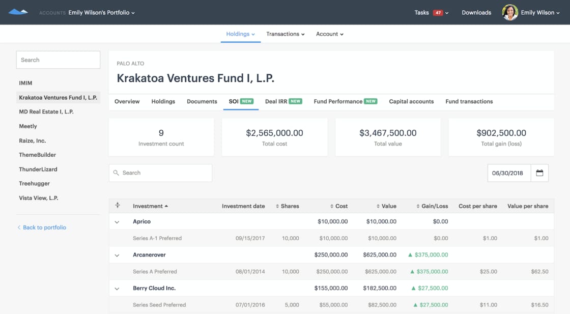 2) Centralized Records: Serving as the system of record for venture funds, family offices, and other institutional investors