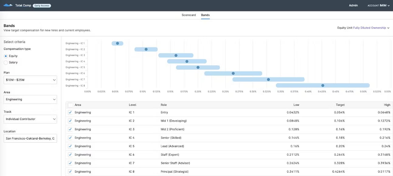 Benchmark compensation packages against industry standards, develop and iterate on compensation plans, and address pay inequities. The benchmark product offers insights across various roles, levels, and regions, and is refreshed quarterly.
