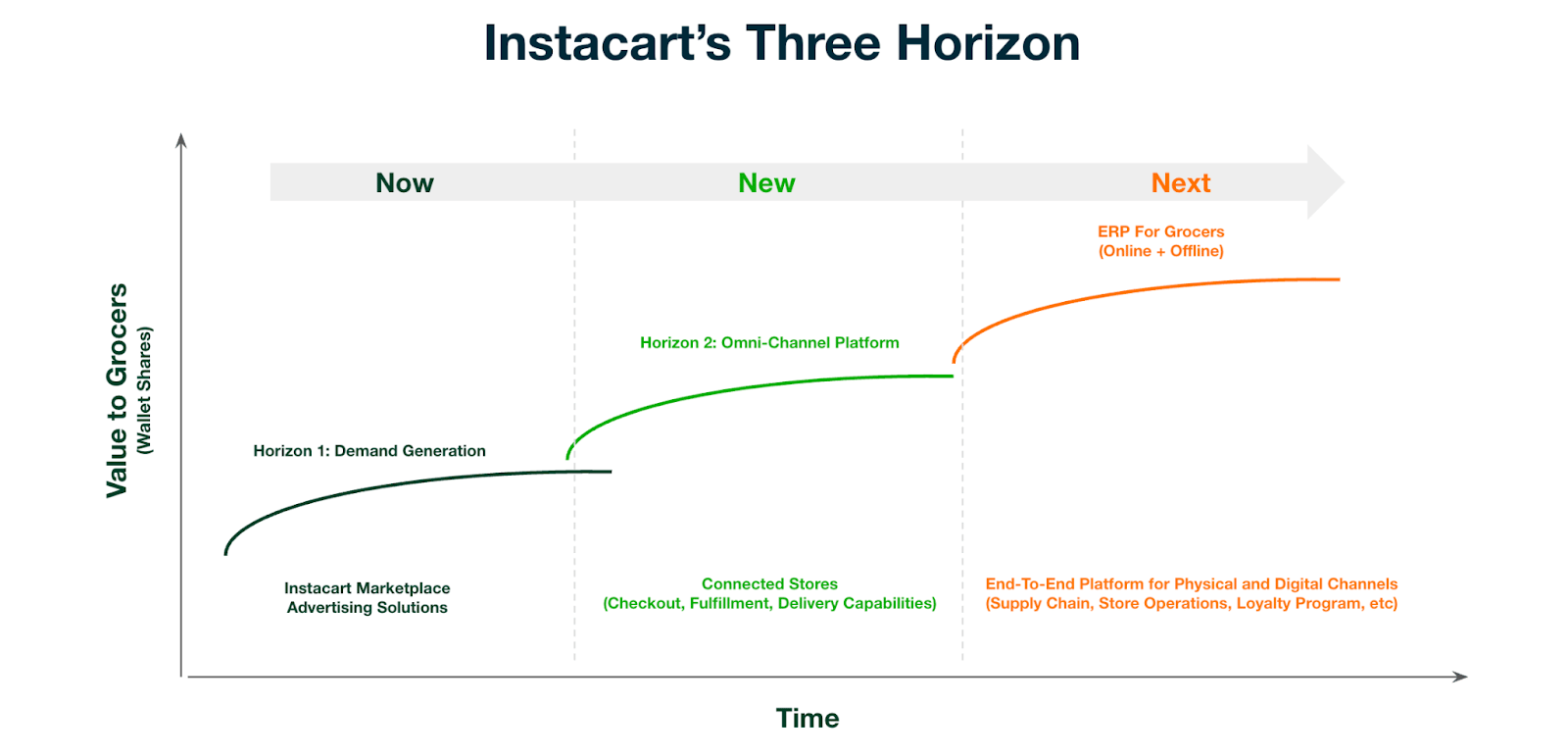 While Instacart has been celebrated as a wild success as the leader in the grocery delivery industry, its potential is far beyond on-demand delivery and advertising. By examining its "Connected Stores" expansion through the lens of the VSaaS playbook, we can hypothesize three distinct horizons of value creation