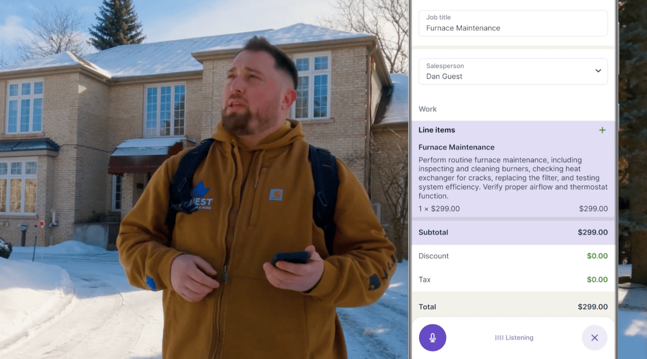 One notable example is the implementation of Voice AI for on-the-ground field service workers. In this 53-second-long video below, Dan illustrates the power of Voice AI in improving operational efficiency for its users. The opportunity to allow users to organize and provide input to the job while they are working and driving between sites, allows for massive productivity gains.