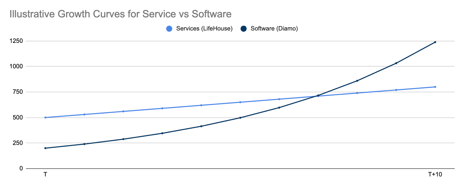 Life House, conversely, started as the service operator, built amazing software internally, and then chose to "unbundle" that software into a standalone entity. It's the "Growth Buyout Reversal", service spinning out software for accelerated, independent growth.